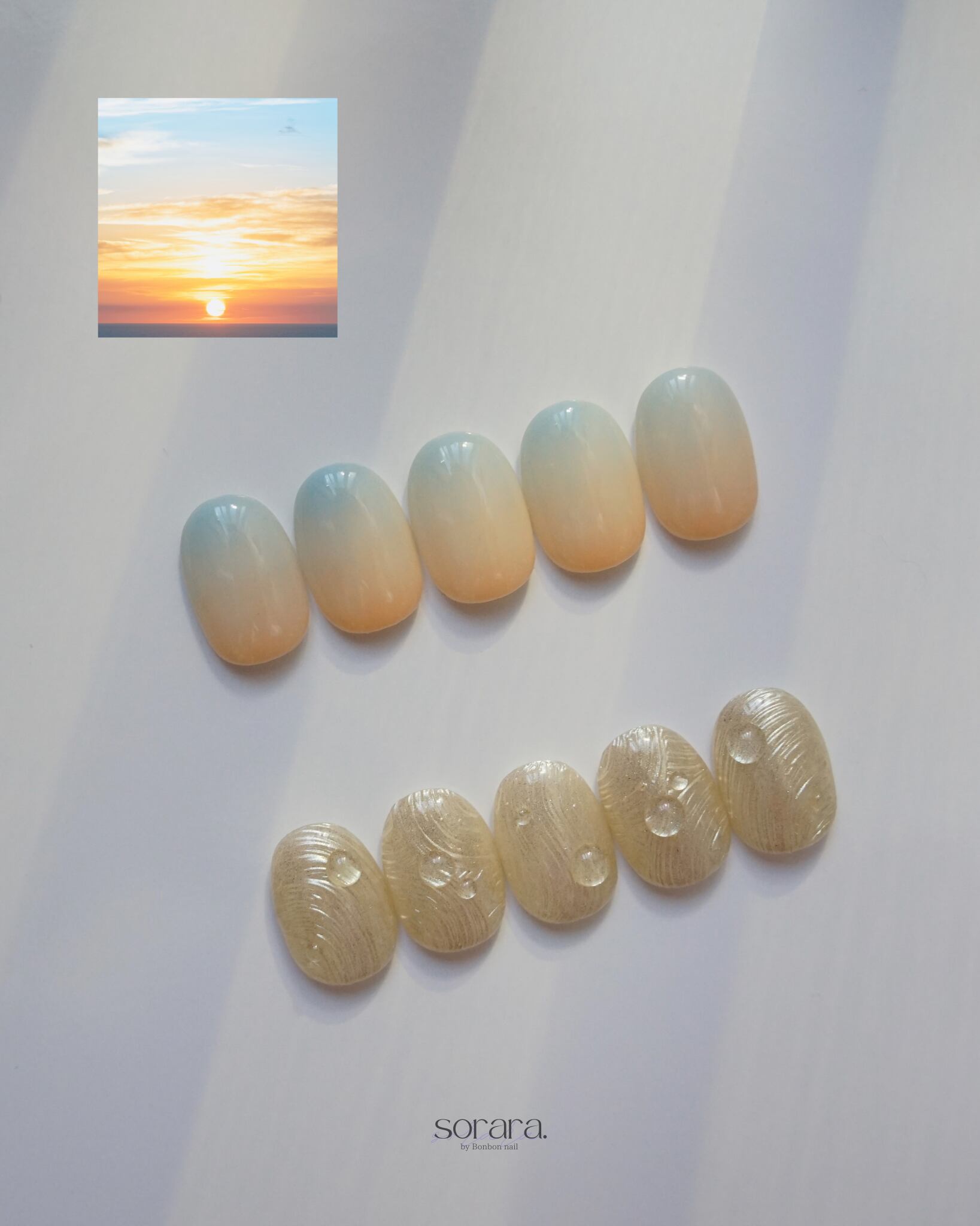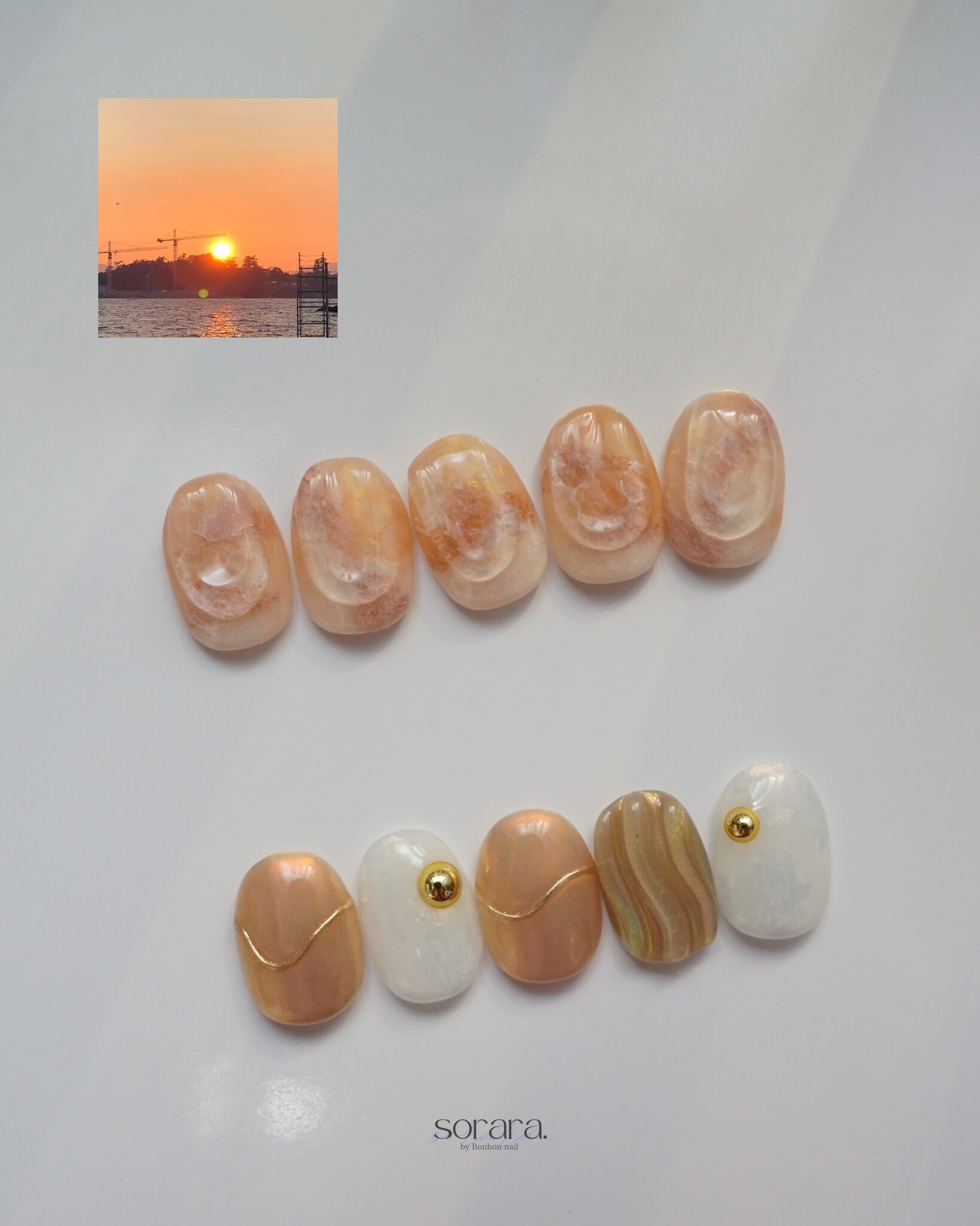 ピンク、ゴールド、オレンジ、の光が輝きます